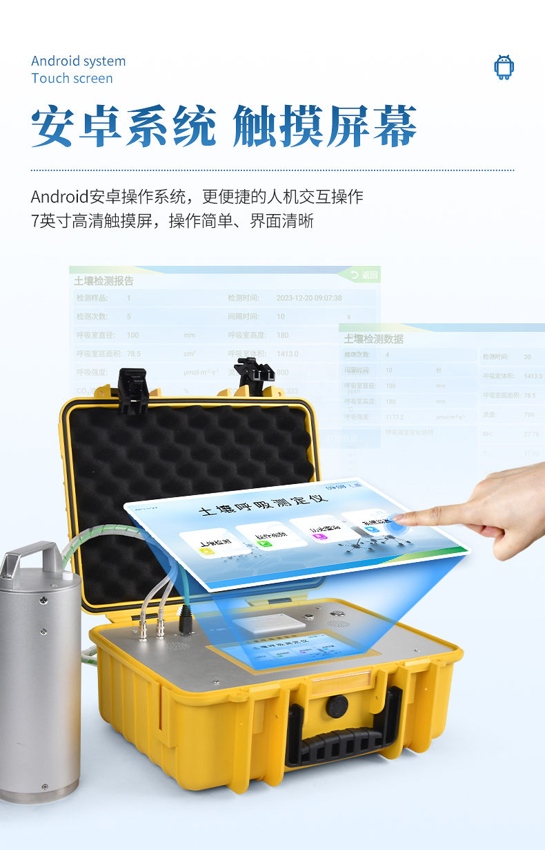土壤呼吸作用測定儀能實時顯示呼吸室內部CO?、H?O、溫度和大氣壓力的變化,廣泛應用于農業生態科研、碳源碳匯研究、全球氣候變化、土地利用變化、生態修復、土壤微生物活力評估、植物生態研究、昆蟲與根系呼吸研究以及水果貯藏等領域。